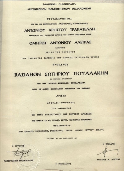 Αποφοίτηση του Ιατρικού τμήματος της Σχολής Επιστημών Υγείας του Αριστοτελείου Πανεπιστημίου Θεσσαλονίκης