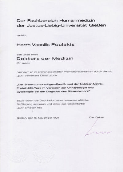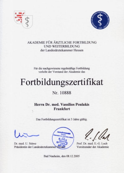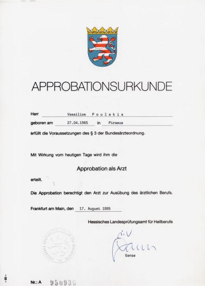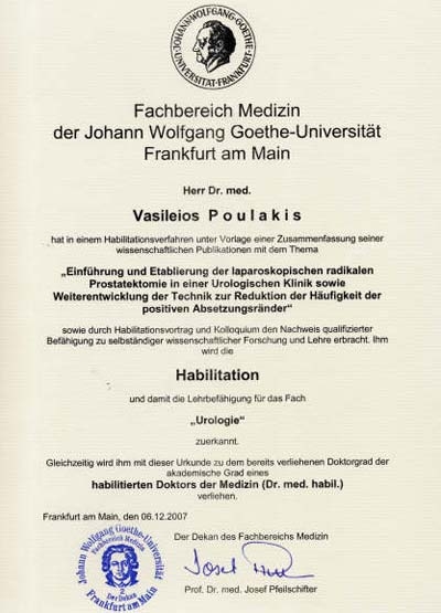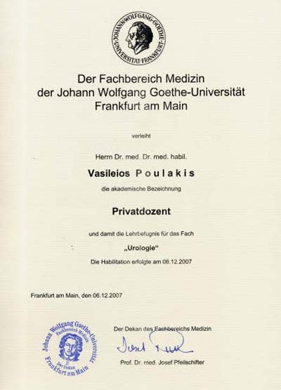 Νοσοκομείου Nordwest της Φρανκφούρτης και η ακαδημαϊκή του καριέρα στο Πανεπιστήμιο της Φρανκφούρτης, την οποία συνεχίζει ακόμη και σήμερα, αφού 3-4 τον χρόνο επισκέπτεται την Ιατρική Σχολή του Πανεπιστημίου της Φρανκφούρτης και κάνει τακτικά μαθήματα στους φοιτητές Ιατρικής όπως επίσης εκπαιδεύει και φοιτητές Ιατρικής του Πανεπιστημίου Φρανκφούρτης στην Ουρολογική Κλινική που διευθύνει στο Νοσοκομείο Metropolitan, στην Ελλάδα.