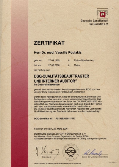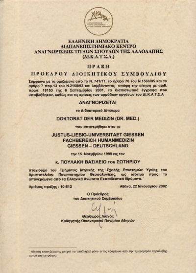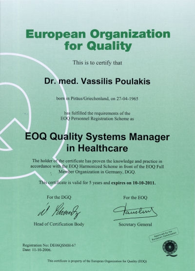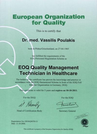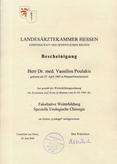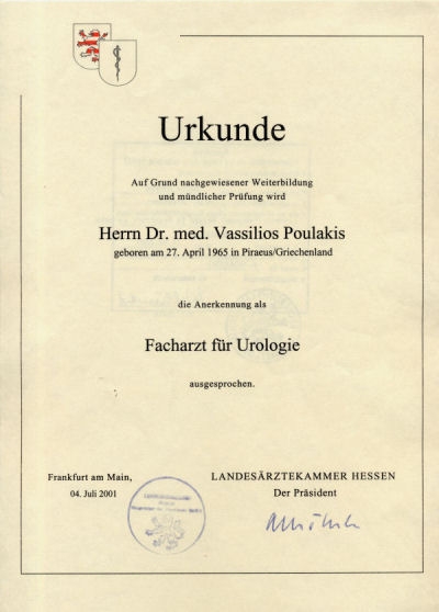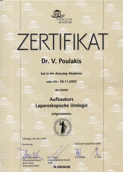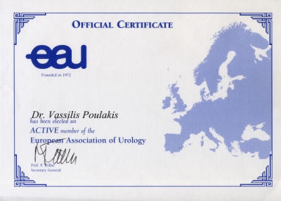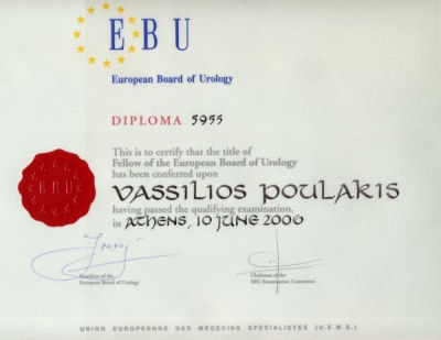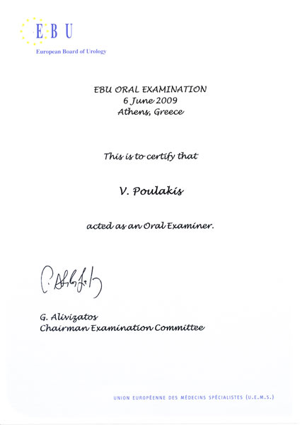 Επιλογή του Δρ. Βασίλη Πουλάκη από την Ευρωπαϊκή Ουρολογική Εταιρεία στην Επιτροπή Εξετάσεων (Examination Committee) και σαν εξεταστή στους γερμανικά ομιλούντες Ουρολόγους στις εξετάσεις για την απόκτηση του τίτλου του Ευρωπαϊκού Κολλεγίου των Ουρολόγων (Fellow of European Board of Urology, FEBU).