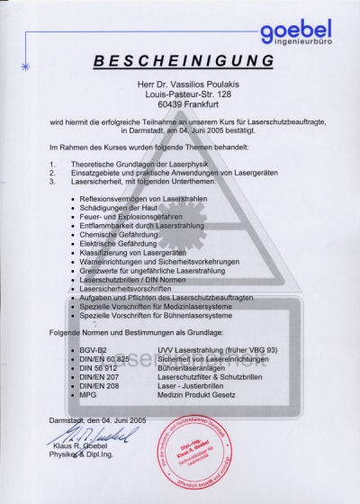 Διδασκαλία με διαλέξεις και παρουσιάσεις στο μαθημα της «Χειρουργικής Ουρολογίας» Σχολή Νοσοκόμων Χειρουργείου Γενικό Κρατικό Νοσοκομείο Nordwest / Φρανκφούρτη και Πανεπιστημιακό Νοσοκομείο Ιατρικής Σχολής του Πανεπιστημίου της Φρανκφούρτης / Γερμανίας